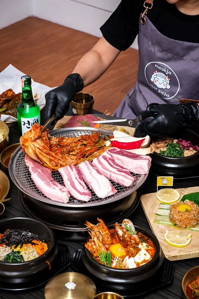 “Meokja Meokja” means “Let’s Eat” — and that’s exactly what we’re all about. A fun twist on Korean BBQ while staying true to its roots. We specialize in premium cuts of pork and beef, and we value quality over all else